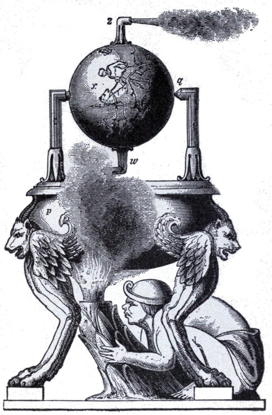 When heated, the water turned to steam, which escaped through the nozzles. The escaping steam created a reactive force (akin to Newton’s third law), causing the sphere to spin on its axis. Essentially, it was a rudimentary jet propulsion system.